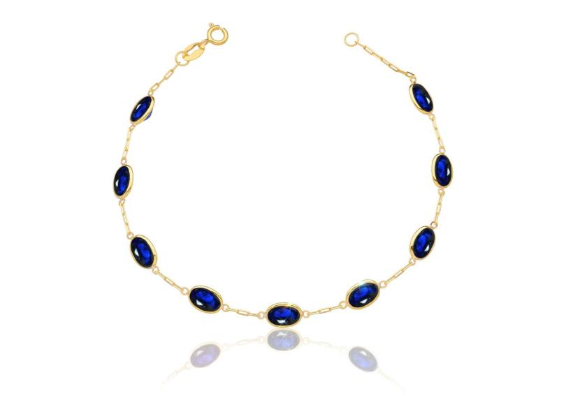 Pulseira Ouro 18k 750 Com Pedras Ovais 7mm - 18cm Azul Safira