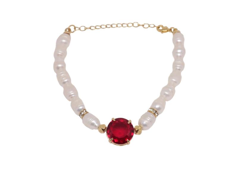 Pulseira Pérolas Com Cristal Banhada A Ouro 18k Ou Rhodium