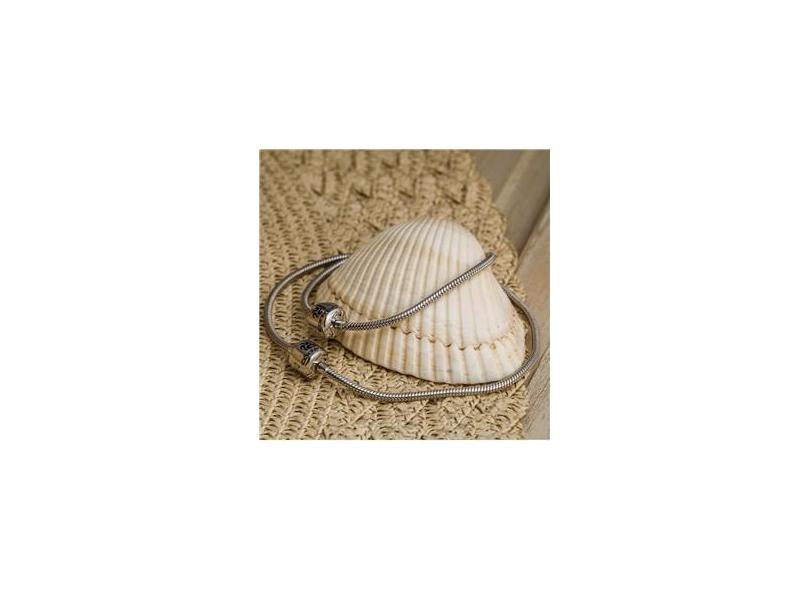 Pulseira Prata para Berloque Link Adulto com Resina Preta 15cm