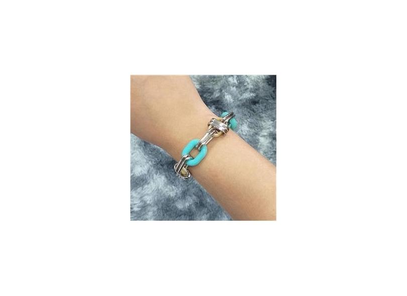 Pulseira Resinada Armazem Rr Bijoux Corrente Verde Prata