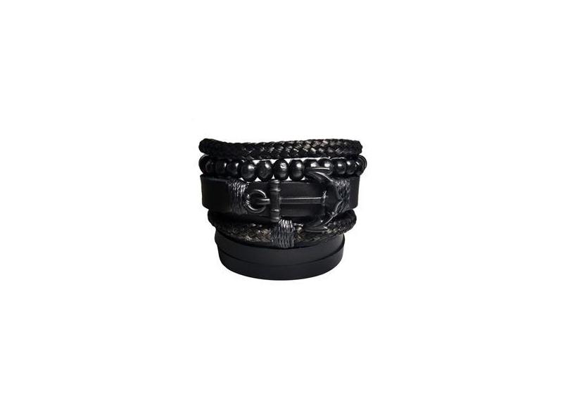 Pulseiras Masculinas 5un All Black Âncora Preta Couro #21187