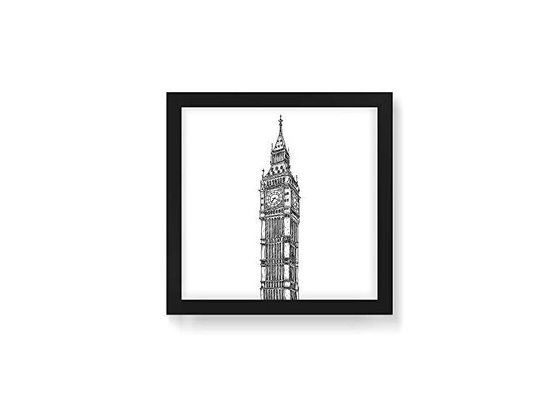 Arte Maníacos Quadro Decorativo Big Ben Linhas - 30x30cm (Moldura em laca )