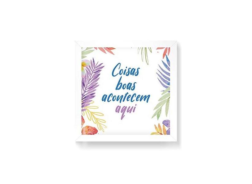 Arte Maníacos Quadro Decorativo Coisas Boas Acontecem Aqui Fundo Floral - 50x50cm (Moldura em laca )