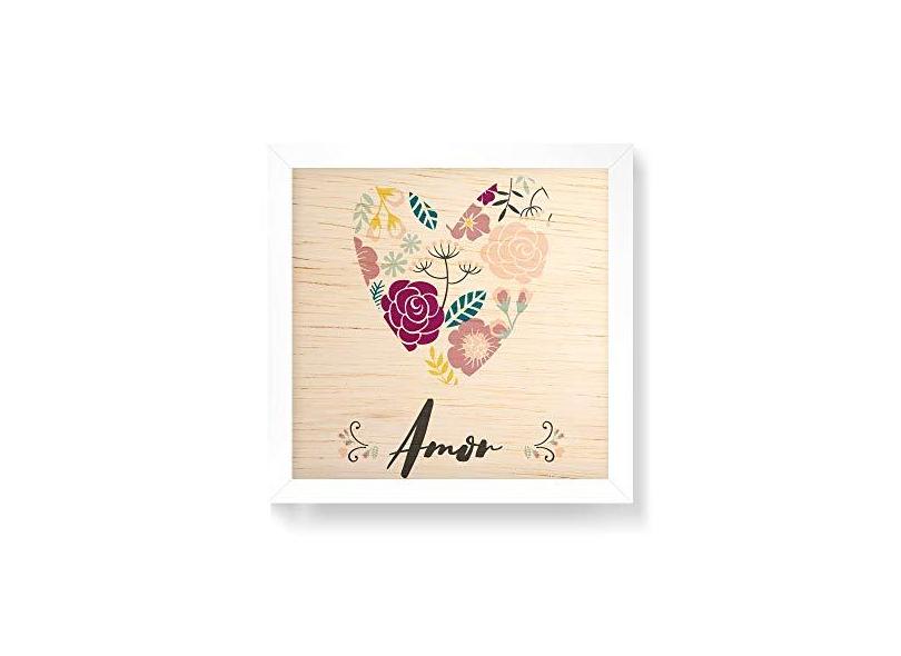 Arte Maníacos Quadro decorativo com moldura caixa em Madeira - Amor Coração Fundo - 30x30cm