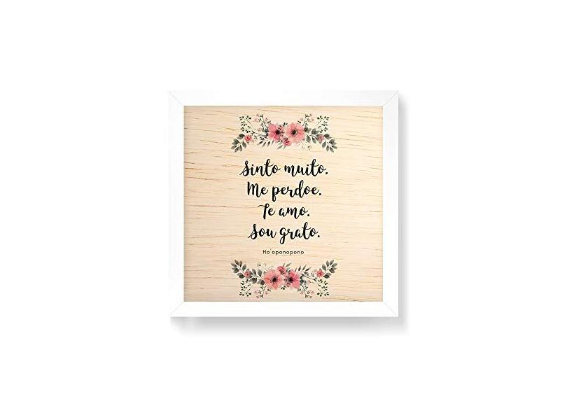 Arte Maníacos Quadro decorativo com moldura caixa em Madeira - Ho´oponopono Fundo - 30x30cm