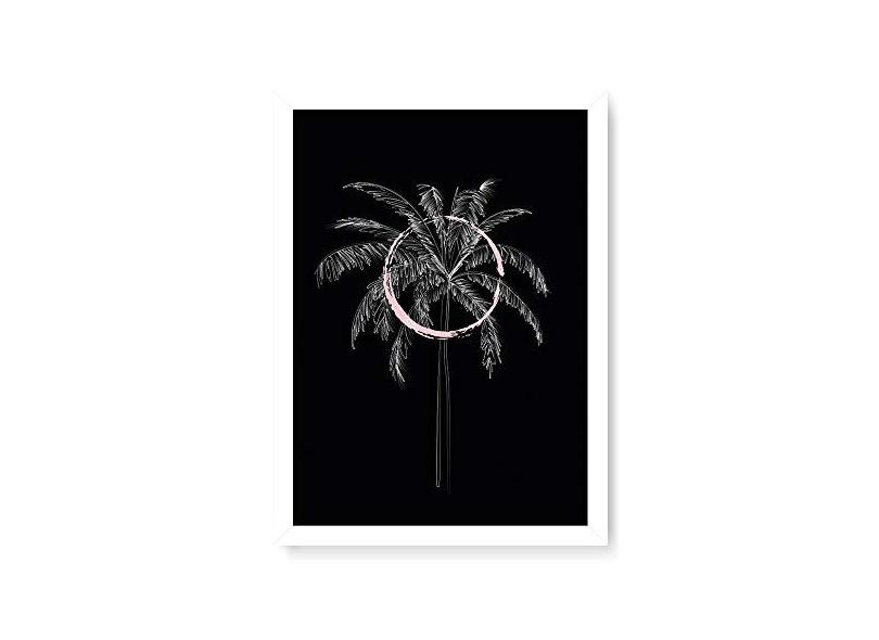 Arte Maníacos Quadro Decorativo Coqueiro Centro Círculo - 23x16,25cm (Moldura caixa em laca )