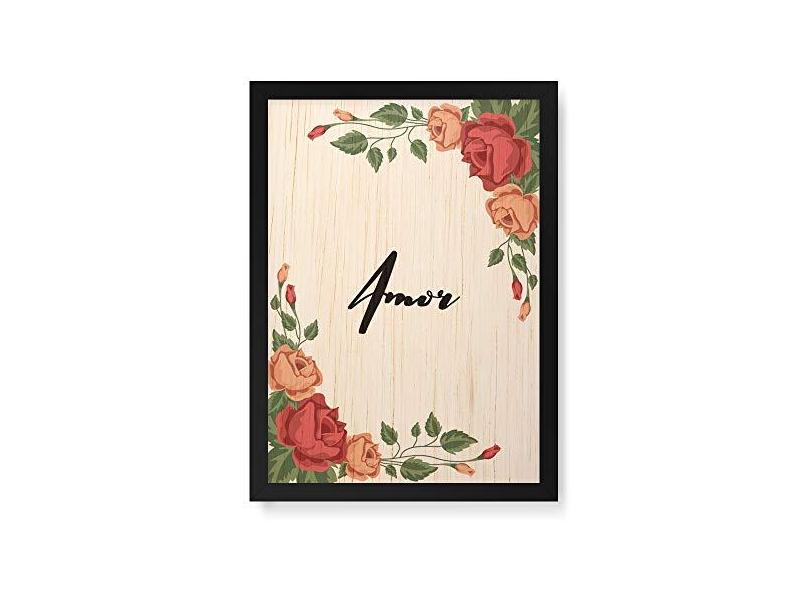 Arte Maníacos Quadro Decorativo em Madeira Amor Flores - 23x16,25cm (Moldura caixa em laca )