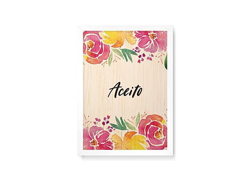 Arte Maníacos Quadro Decorativo em Madeira Floral Aceito - 23x16,25cm (Moldura caixa em laca )