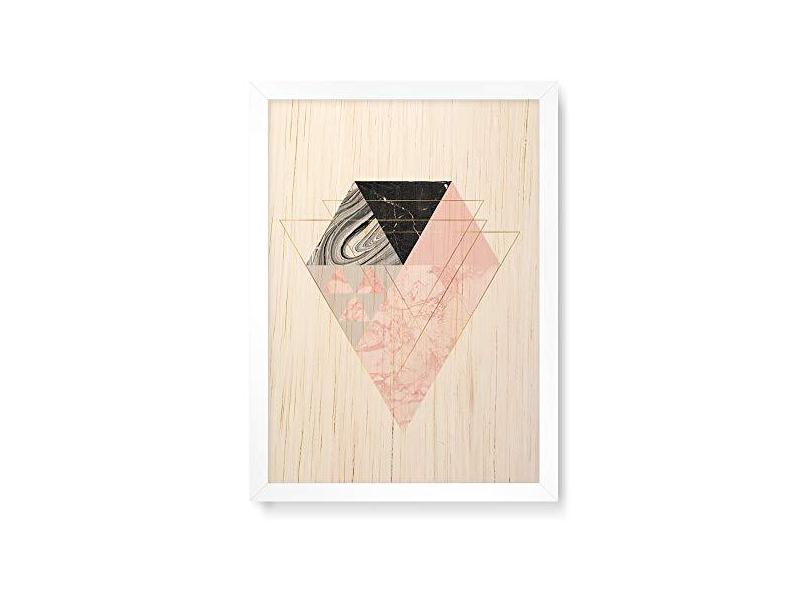 Arte Maníacos Quadro Decorativo em Madeira Geométrico Triângulos Diamante - 23x16,25cm (Moldura caixa em laca )