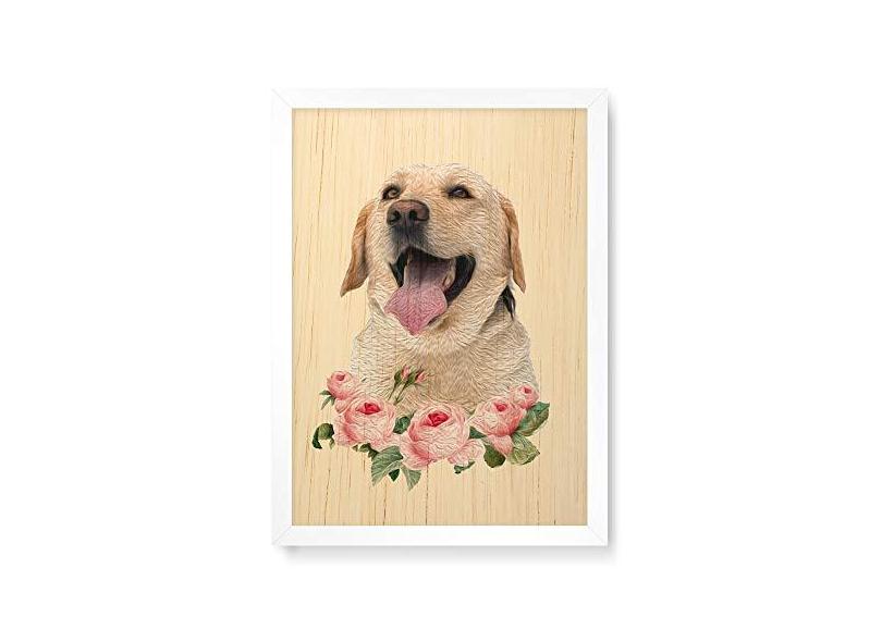 Arte Maníacos Quadro Decorativo em Madeira Labrador Flores - 23x16,25cm (Moldura caixa em laca )