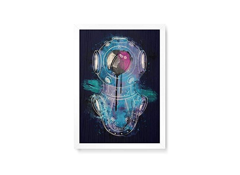 Arte Maníacos Quadro Decorativo em Madeira Mergulhador Color - 23x16,25cm (Moldura caixa em laca )