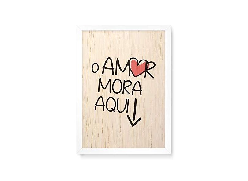 Arte Maníacos Quadro Decorativo em Madeira O Amor Mora Aqui - 23x16,25cm (Moldura caixa em laca )