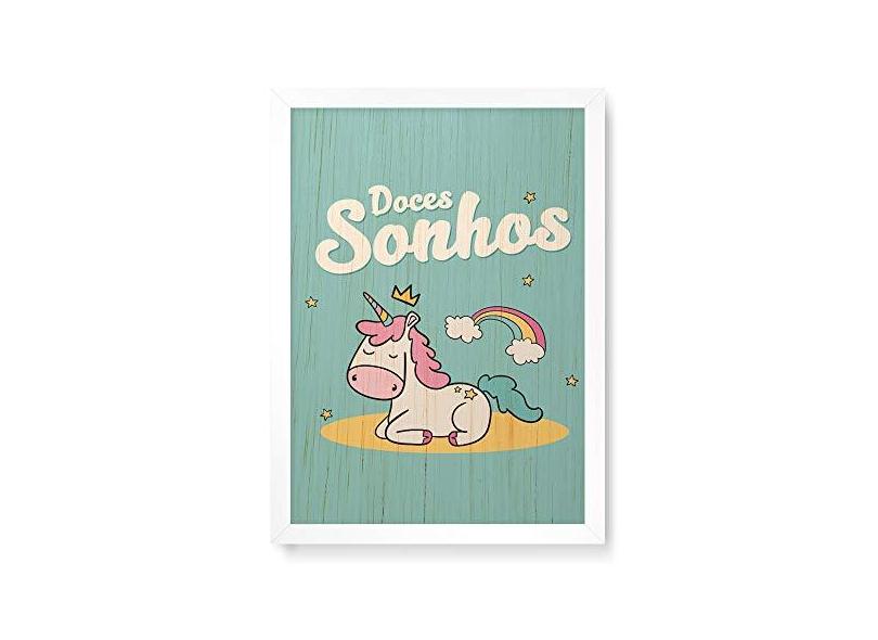 Arte Maníacos Quadro Decorativo em Madeira Unicórinio Doces Sonhos - 23x16,25cm (Moldura caixa em laca )