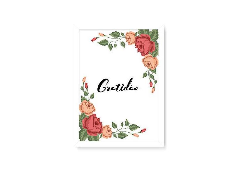 Arte Maníacos Quadro Decorativo Gratidão Flores Fundo - 23x16,25cm (Moldura caixa em laca )