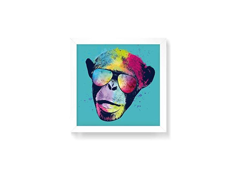 Arte Maníacos Quadro Decorativo Macaco Color Fundo Verde - 30x30cm (Moldura em laca )