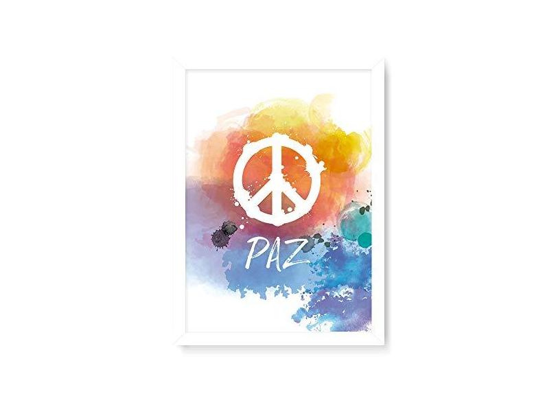Arte Maníacos Quadro Decorativo Paz Aquarela - 23x16,25cm (Moldura caixa em laca )