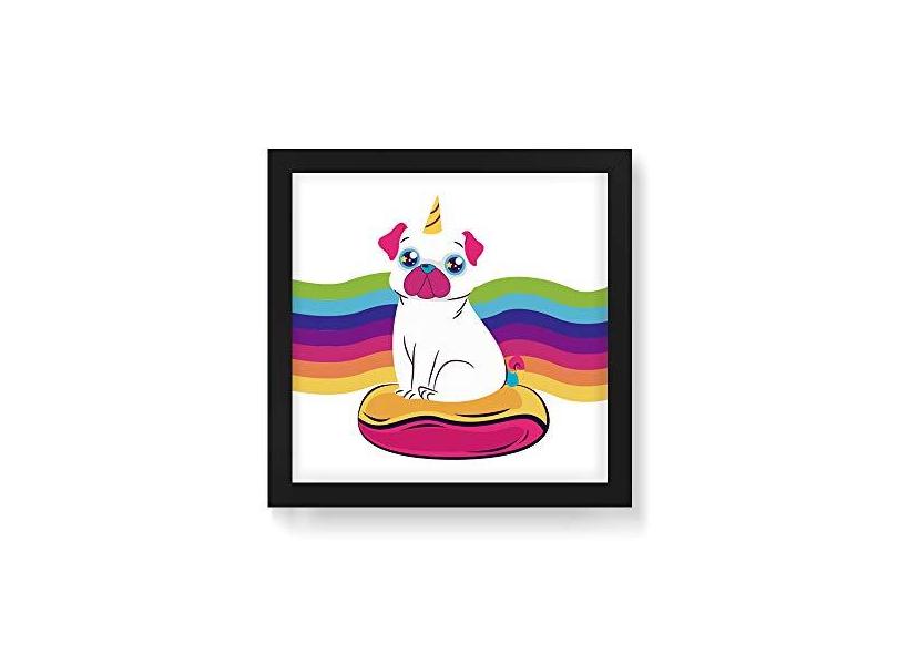 Arte Maníacos Quadro Decorativo Pugcórnio Arcoíris - 50x50cm (Moldura em laca )