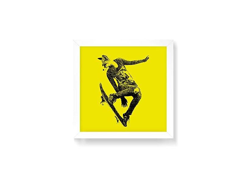 Arte Maníacos Quadro Decorativo Raposa Skate - 30x30cm (Moldura em laca )