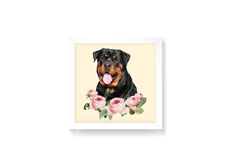 Arte Maníacos Quadro Decorativo Rottweiler Flores - 50x50cm (Moldura em laca )