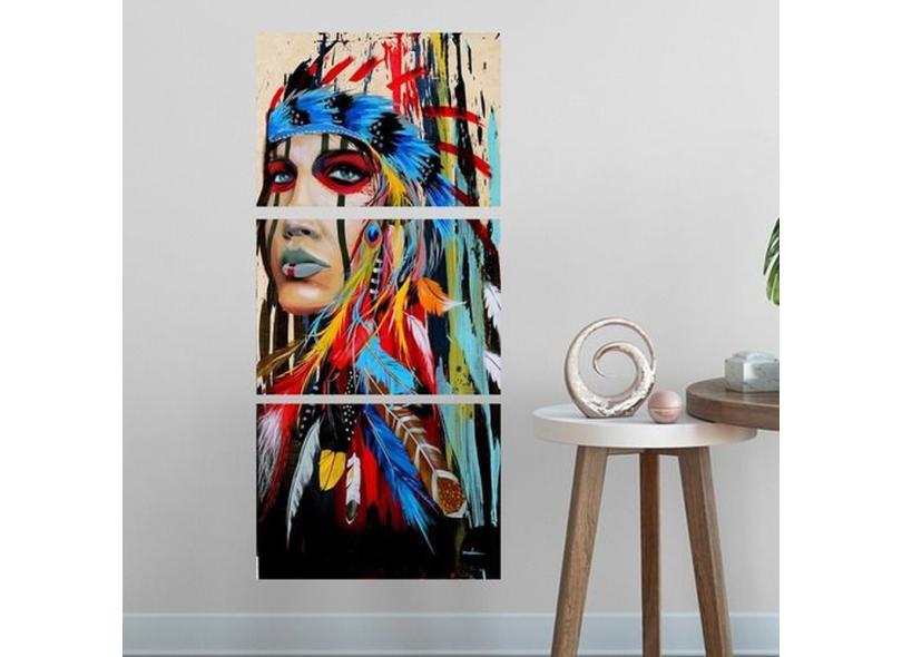 Conjunto De 3 Telas Quadro Decorativo Índia Apache