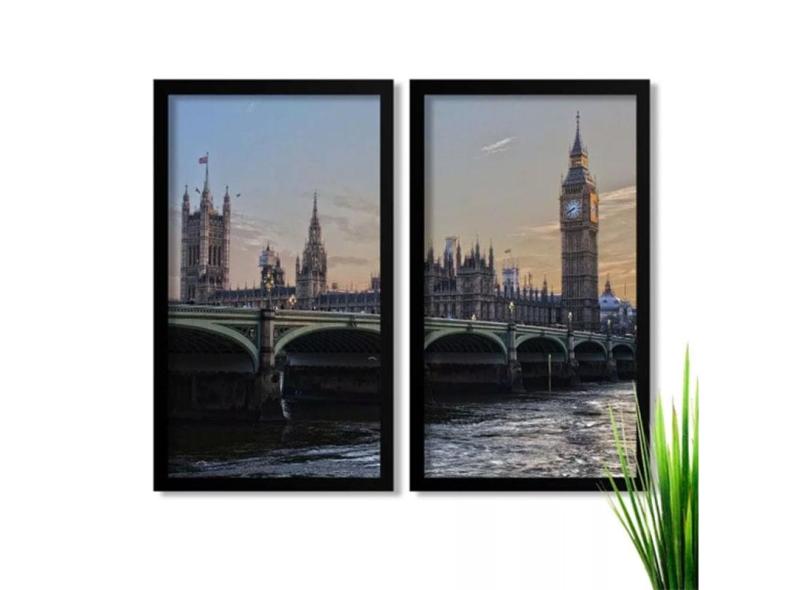 Conjunto De Quadros Decorativos Londres Big Ben Com Vidro
