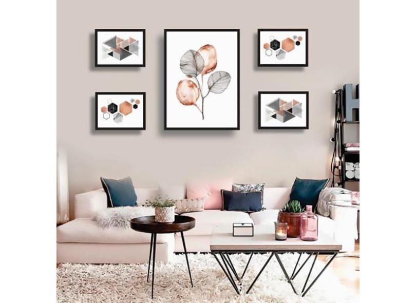 Conjunto Kit 5 Quadros Decorativos Geométrico Rose Gold Sala