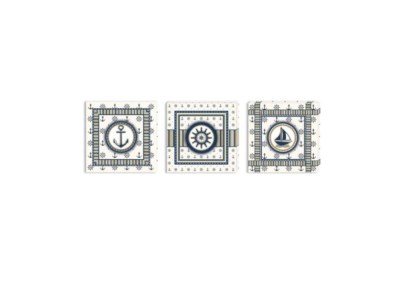 Conjunto Kit Com 3 Quadros Náuticos Decorativos Linha Náutica Marinheiro - Mar 3