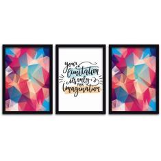 O menor preço encontrado no Brasil para Conjunto Quadros Decorativos 3 pçs MDF 30x40 Forma Frases 2 atualmente é R$ 63,10.