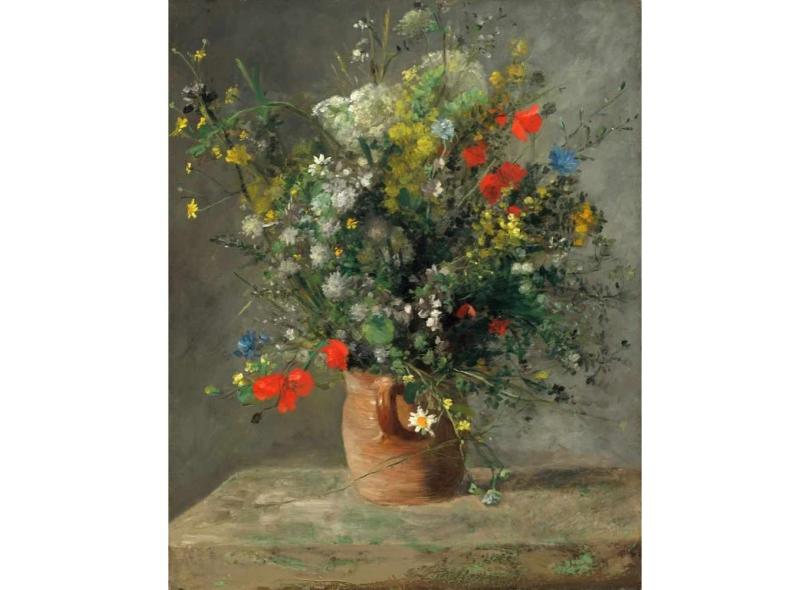 Flores em um Vaso de Barro (1866) - Pierre-Auguste Renoir - 75x93 - Tela Canvas Para Quadro