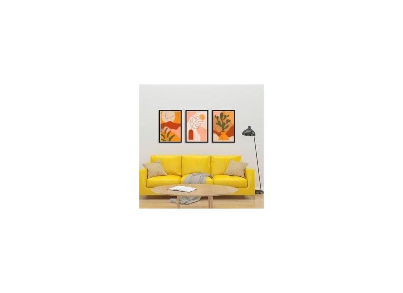 Kit 03 Quadros Decorativos Figurativos Folhagens Alaranjadas