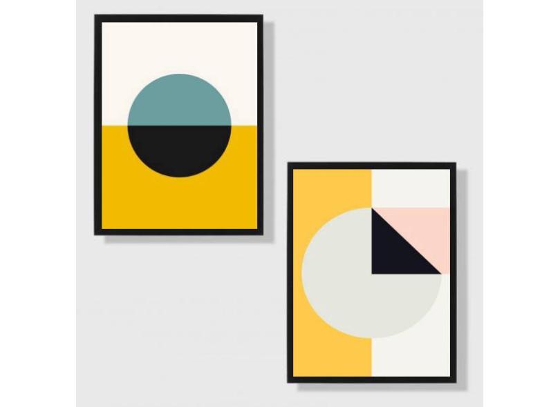 Kit 2 Quadros Decorativos Abstratos Círculos 45x34cm