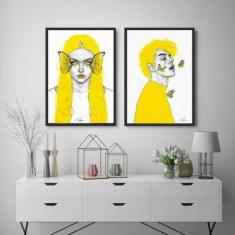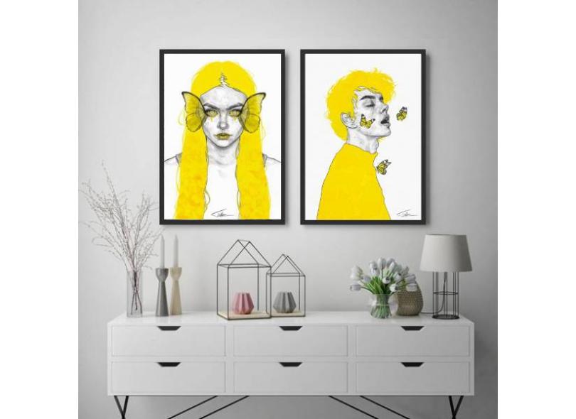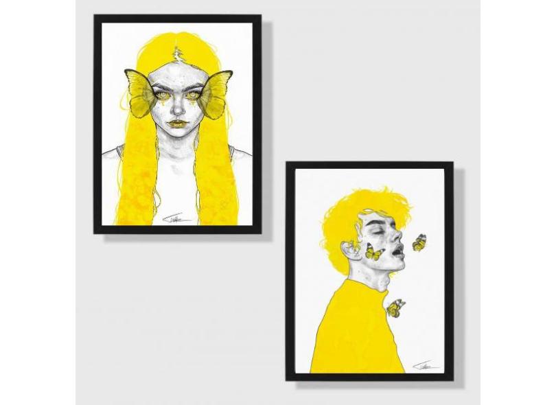 Kit 2 Quadros Decorativos Butterfly Aliens 45x34cm