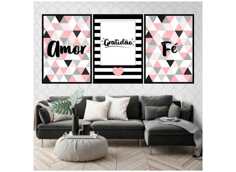 O menor preço encontrado no Brasil para Kit 3 Quadros Decorativos Amor, Gratidão e Fé 45x34cm atualmente é R$ 196,95.