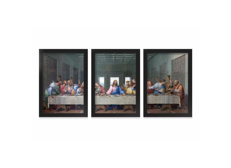 Kit 3 Quadros Decorativos Com Moldura Jesus Fé Santa Ceia