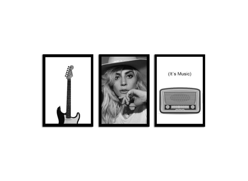 Kit 3 Quadros Decorativos Com Moldura Para Sala Quarto Lady Gaga Rock Pop