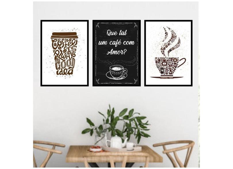 Kit 3 Quadros Decorativos Que Tal um Café Com Amor? 45x34cm