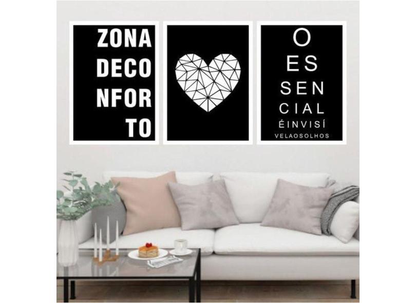 Kit 3 Quadros Decorativos Zona De Conforto Coração 34X23cm