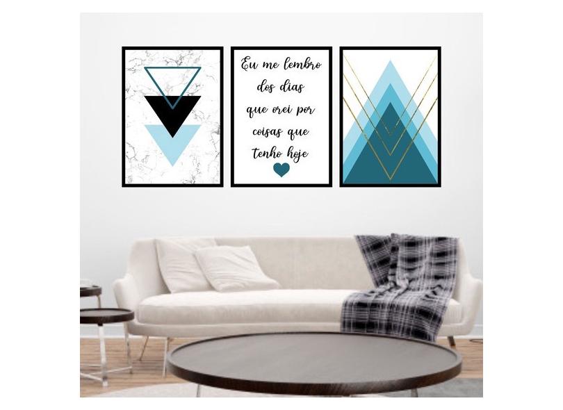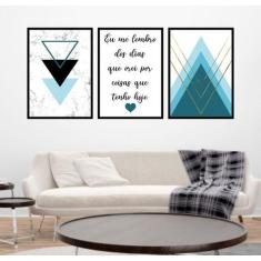 Kit 3 Quadros Geométrico Eu Lembro Turquesa 45x34cm
