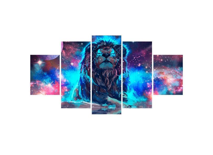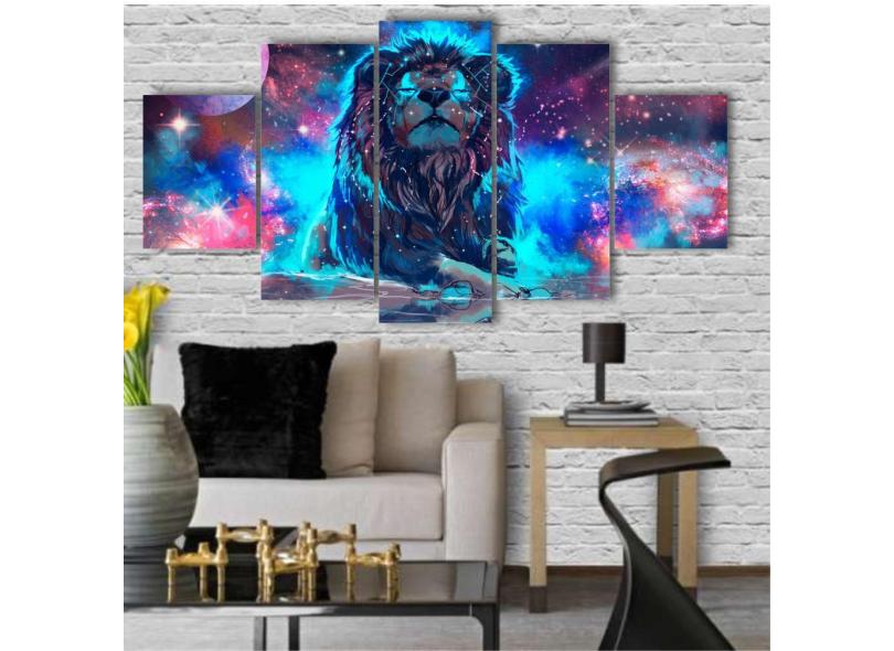 Kit Quadro Decorativo 115X60Cm Sala Quarto Leão No Universo