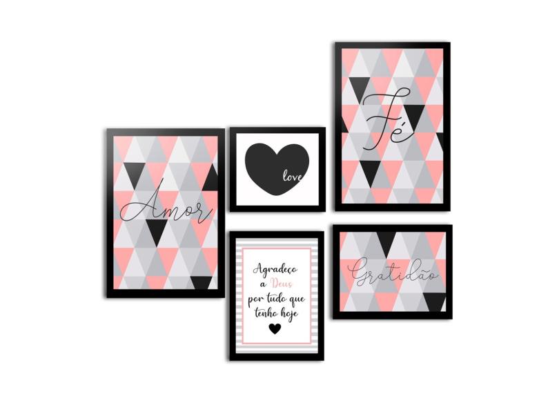 Kit Quadros Decorativos Com Molduras Frases Motivacionais Abstrato Love Quarto Sala