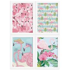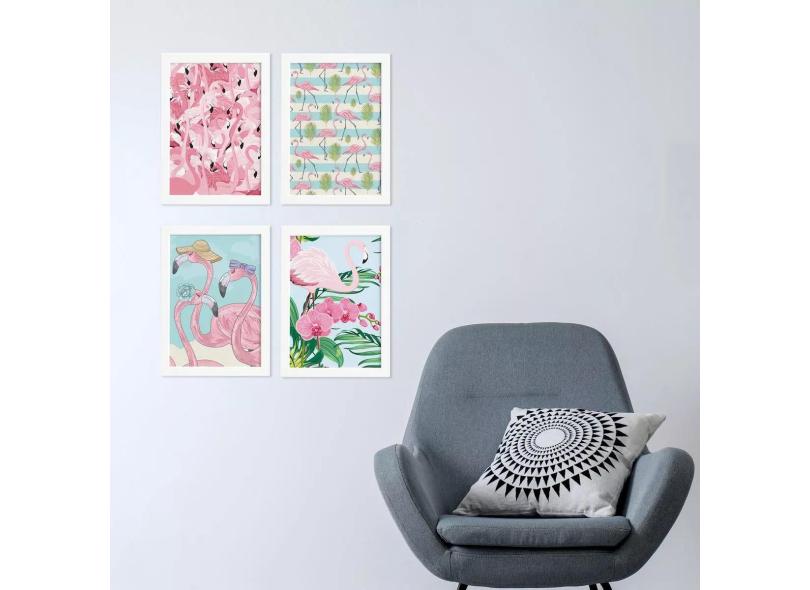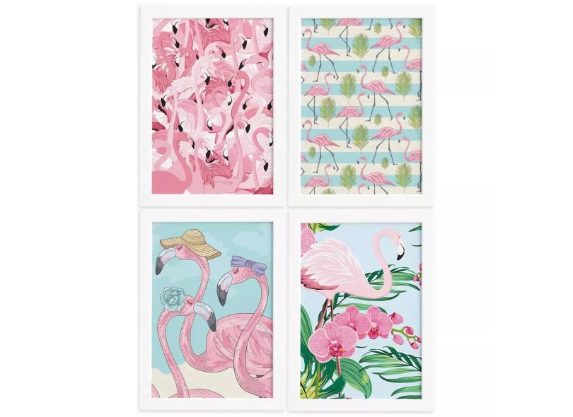 Kit Quadros Flamingos Tropicais Moldura 4Un 22X32cm