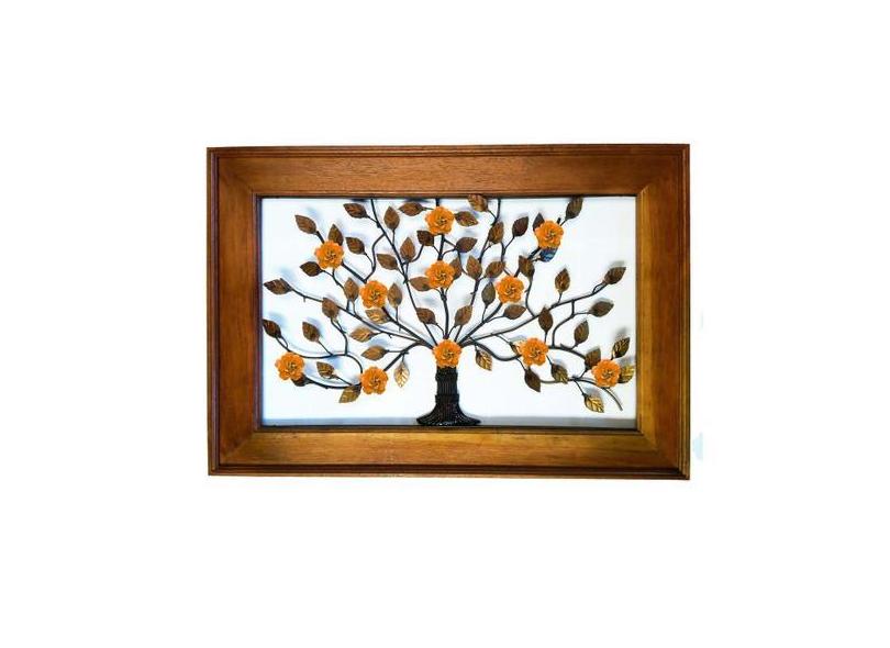 Moldura Artesanal Quadro Ferro Rustico Parede de Casa Árvore com Flore