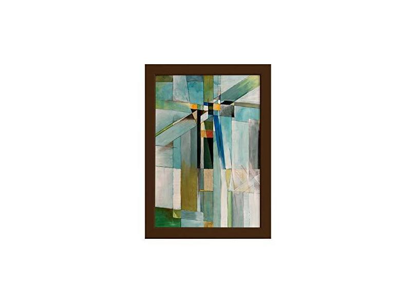 Quadro Abstrato Geométrico Pintura Moldura Marrom 22x32cm