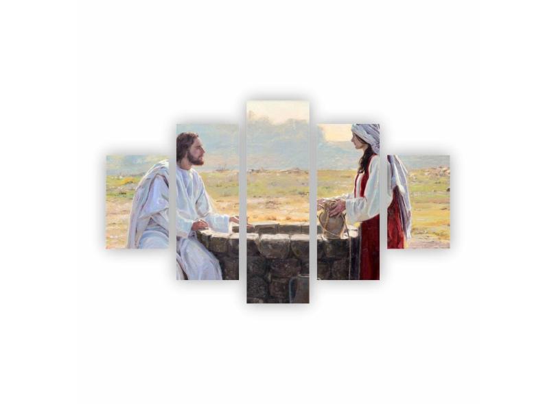 Quadro Canvas Jesus E Mulher No Poço 110X65Cm