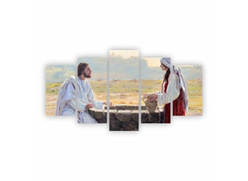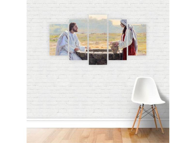 Quadro Canvas Jesus E Mulher No Poço 155X80Cm