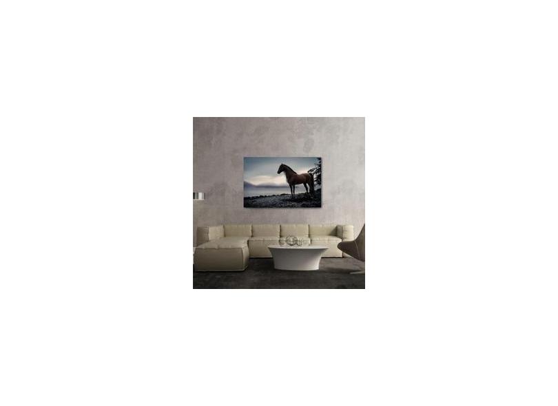 Quadro Cavalo Marrom Paisagem Escura Decorativo