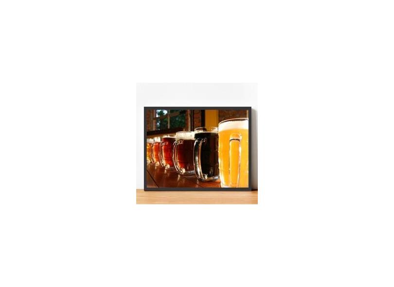 Quadro Com Moldura Cerveja Álcool Espuma Bar Balcão Canecas