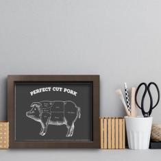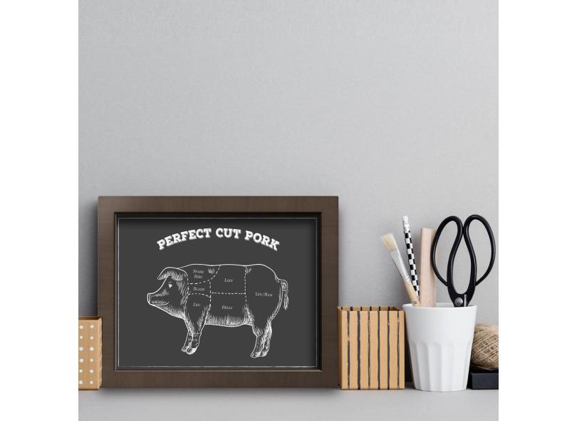 Quadro Cozinha Churrasco Cortes Porco 22x32cm Moldura Marrom