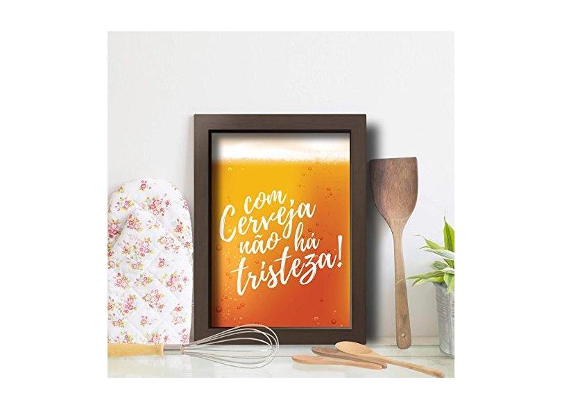 Quadro Cozinha Frase Com Cerveja 22x32cm Moldura Marrom