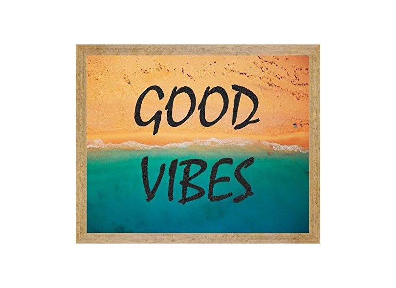 Quadro de Frases Good Vibes Paisagem Praia Decore Pronto Multicor 45x55cm